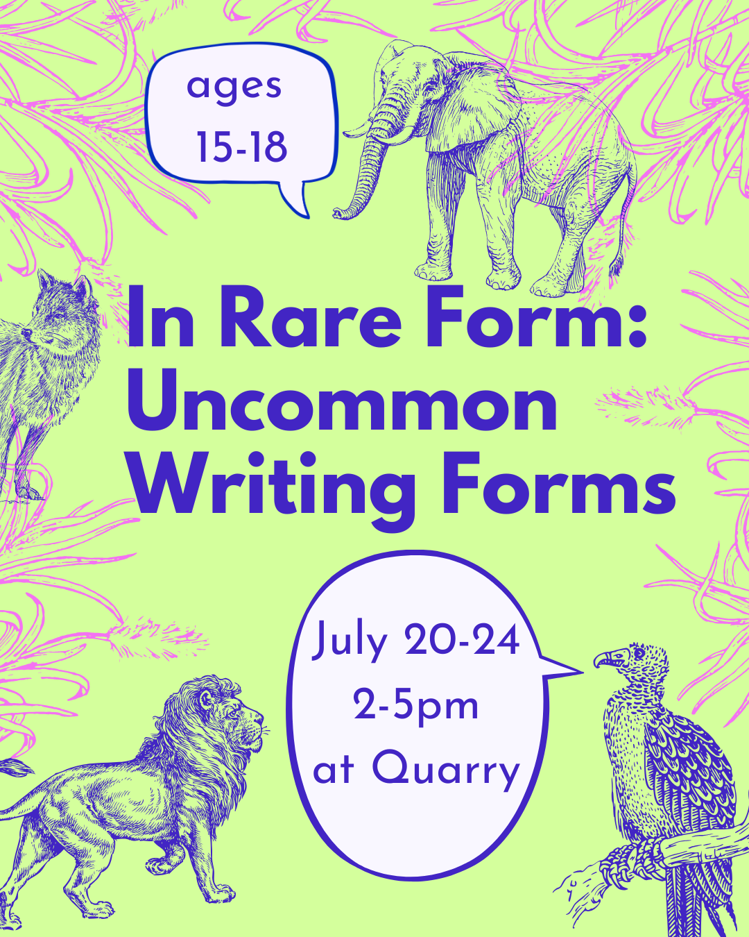 We’ve got LOTS of cool writing opportunities on the calendar this summer, including our first-ever FULL DAY CAMPS at Camp Truetimber, in collaboration with Open Space Education!